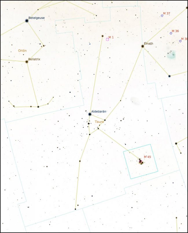 Image 2: The location and the dimensions of the field covered (blue square) in Image 1. Graphics from Stellarium.
