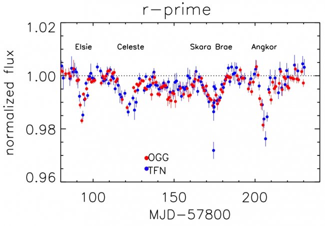 Brightness of KIC 8462852 between May 6 and October 9, 2017, measured with the LCO telescopes at the Observatory of Hawaii (OGG) and the Teide Observatory (TFN). Source: Wikipedia. Credit: Team of Tabetha Boyajian.