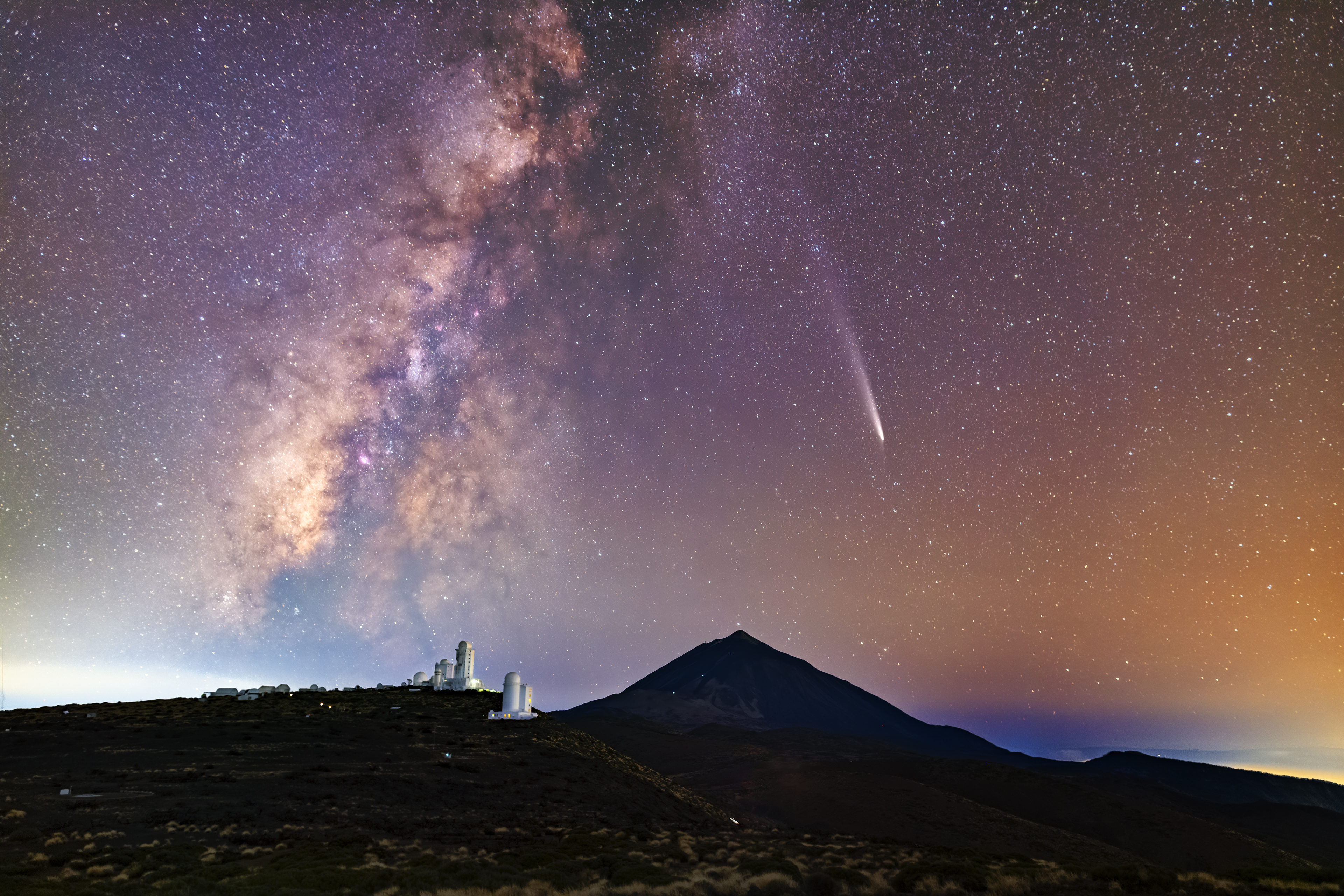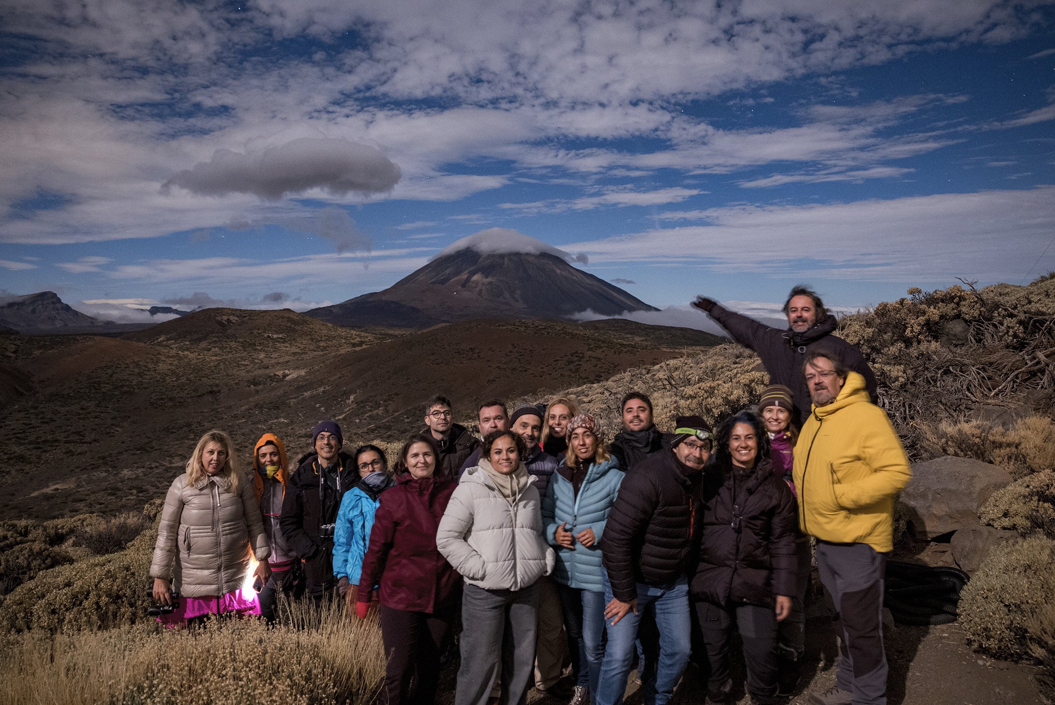 El 15 de octubre, a pesar de una Luna iluminada al 96 %, la suma de condiciones, en general, enumeradas en la segunda entrada en el blog sobre este cometa, hacían esperar buenas condiciones para su observación. Con este objetivo convocamos a un grupo de activos profesores del proyecto CosmoLab del IAC en el Observatorio del Teide, con el fin de poder disfrutar del evento. Aunque las nubes hicieron acto de presencia, no impidieron observar y disfrutar del efímero visitante.