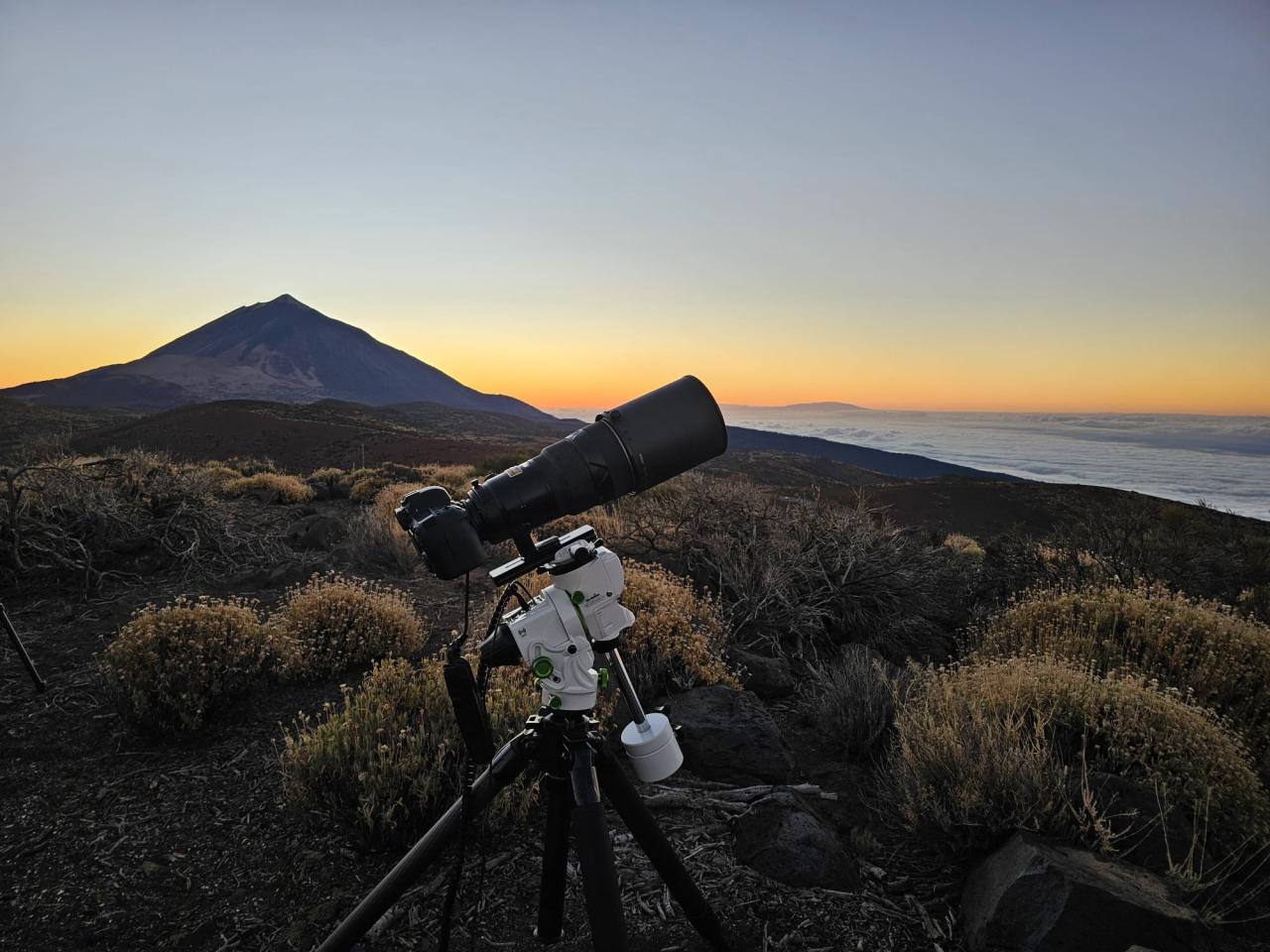 Foto 02: Cámara con teleobjetivo sobre trípode con seguimiento estelar. Daniel López /IAC.
