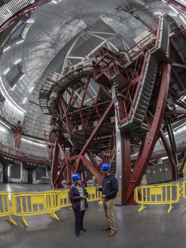 La escritora Ángela Vallvey en su visita al Gran Telescopio Canarias (GTC), del Observatorio del Roque de los Muchachos (ORM), en La Palma. Crédito: Toño González/IAC