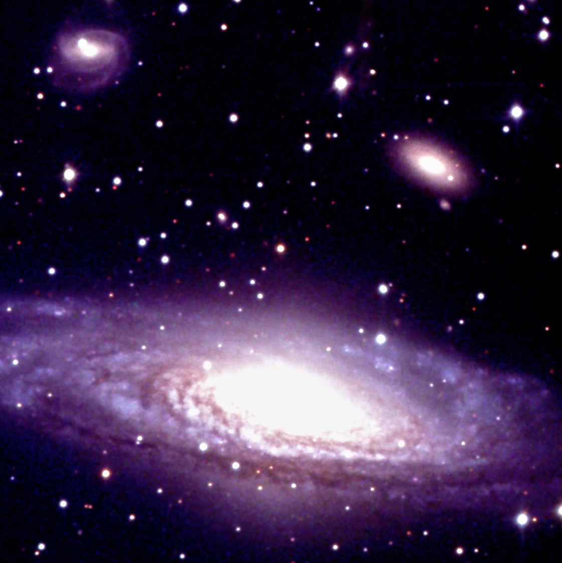 NGC7331, descubierta en 1794 por William Herschel, es una de las galaxias más brillantes que no están incluidas en el catalogo de Messier. En ella se puede apreciar una ligera estructura de brazos espirales a pesar de su poca inclinación, ya que está situada casi ?de canto?. Esta galaxia fue una de las primeras galaxias reconocidas como de tipo espiral e incluidas por Lord Rosse en su lista de 14 ?nébulas espirales o curvilíneas?. En 1959, Milton Humason descubrió una supernova, SN1959D, muy cerca de su núcleo (32? W y 13? N), la cual llegó a alcanzar un brillo de 13,4 mag. Se estima que su masa está en torno a 140 mil millones de veces la masa solar y que se encuentra situada a 50 millones de años luz. Se puede asumir que la apariencia que presenta nuestra galaxia vista desde muy lejos es muy similar a la que ofrece esta galaxia. En la parte superior de esta imagen se pueden observar otras galaxias compañeras que están mucho más lejos de nosotros.