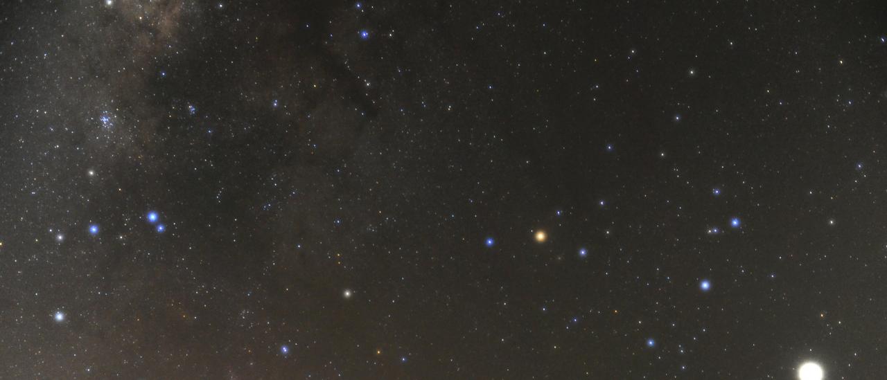 Constelación del Escorpión sobre el anfiteatro de Las Cañadas del Teide. El objeto brillante a la derecha de la imagen es el planeta Venus.