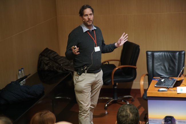 Rene Fassbender, director general y fundador de una empresa de análisis de datos, en el "Primer taller europeo sobre transferencia de tecnologías y conocimientos generados por la Astrofísica". Crédito: Inés Bonet (IAC).
