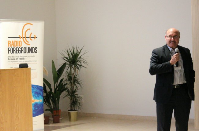 Rafael Rebolo durante la presentación del congreso CMB Foregrounds el pasado lunes en La Laguna. Crédito: Silvia Granja González (IAC).