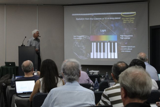 Werner Hofmann durante su charla "CTA in the context of gamma ray astronomy". Crédito: Alejandra Rueda (IAC).