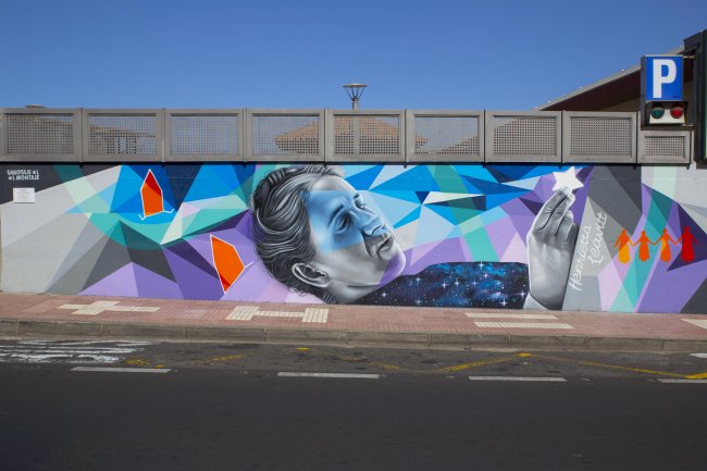 Mural en honor a Henrietta Leavitt elaborado por Sabotaje al Montaje junto al Mercado Municipal La Estación de Tacoronte. Crédito: Elena Mora (IAC)