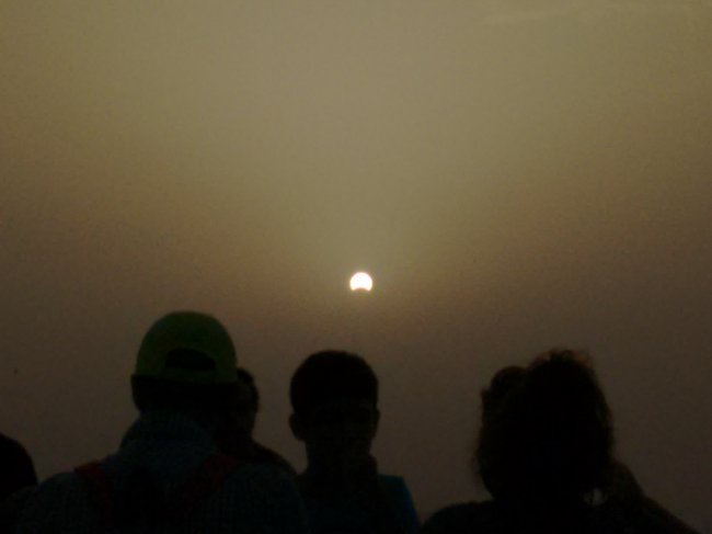 Visitantes en el Observatorio del Teide observan el eclipse parcial. Crédito: Nayra Rodríguez Eugenio/IAC.