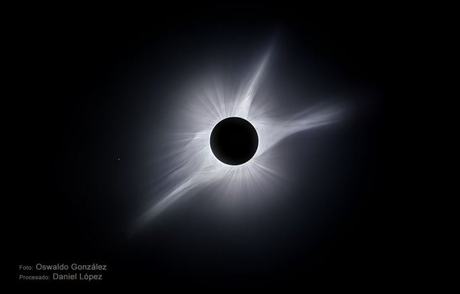 Imagen del eclipse tomada por Oswaldo González (Museo de la Ciencia y el Cosmos) y procesada por Daniel López/IAC.