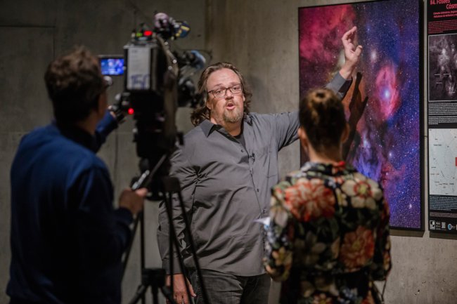 Alfred Rosenberg, director del proyecto "100 Lunas cuadradas" y astrofísico divulgador del IAC, durante la presentación de la exposición que recibe el mismo nombre en el Museo de la Ciencia y el Cosmos. Crédito: Daniel López / IAC.