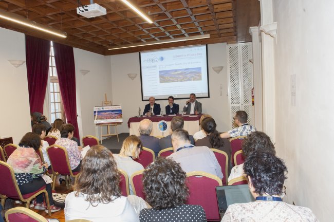 Inauguración del GiPD a cargo de Rafael Rebolo, director del IAC; Carlos Alonso, presidente del Cabildo de Tenerife; y José Alberto Díaz, alcalde del Ayuntamiento de La La Laguna. Crédito: Miguel Briganti, SMM (IAC).