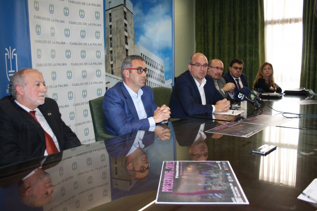 José Miguel Rodríguez Espinosa, investigador del IAC y presidente del Comité Organizador Científico, Sergio Matos, alcalde del Ayuntamiento de Santa Cruz de La Palma; Anselmo Pestana, presidente del Cabildo de La Palma, Rafael Rebolo, director del Instituto de Astrofísica de Canarias (IAC); Manuel Miranda, director de la Agencia Canaria de Investigación, Innovación y Sociedad de la Información (ACIISI) en representación del Gobierno de Canarias; y Antonia María Varela, también astrofísica del IAC, en representación de la Fundación Starlight. Crédito: Cabildo de La Palma.