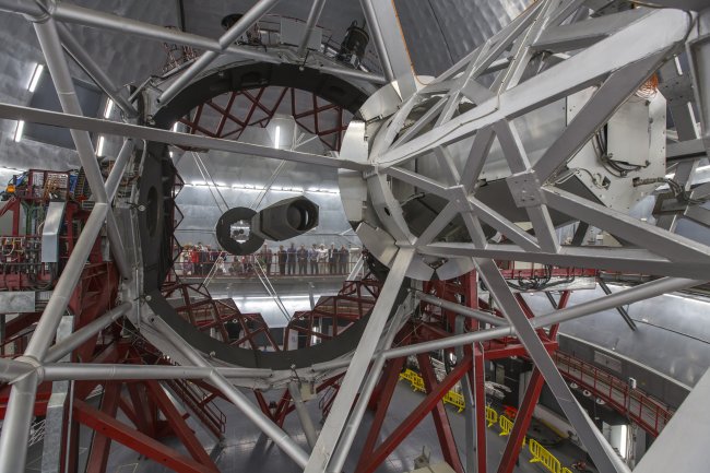 Asistentes al acto de primera luz de MEGARA reflejados en el GTC. Crédito: Antonio González/IAC.