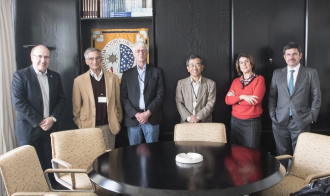De izquierda a derecha: Rafael Rebolo, Thomas Soifer, Gregory Fahlman, Masanori Iye, Casiana Muñoz-Tuñón y Santiago Garrido.