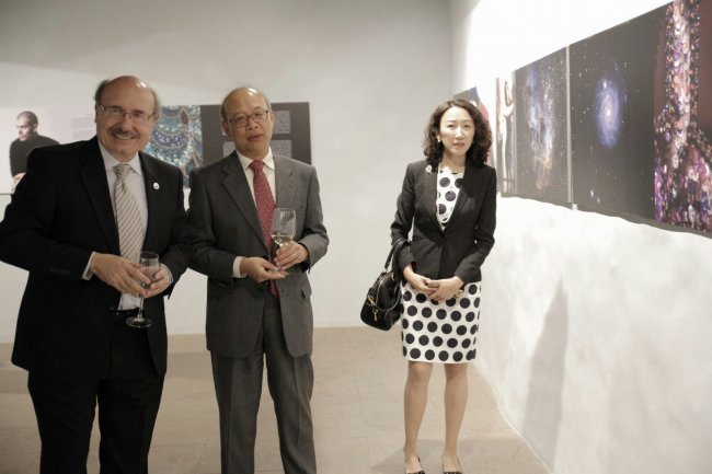 Rafael Rebolo, director del IAC, junto al vicepresidente de la Academia de Ciencias China, durante el acto de bienvenida a los participantes en el Congreso "Preserving the Skies" en La Palma. Foto: Elena Mora (IAC)