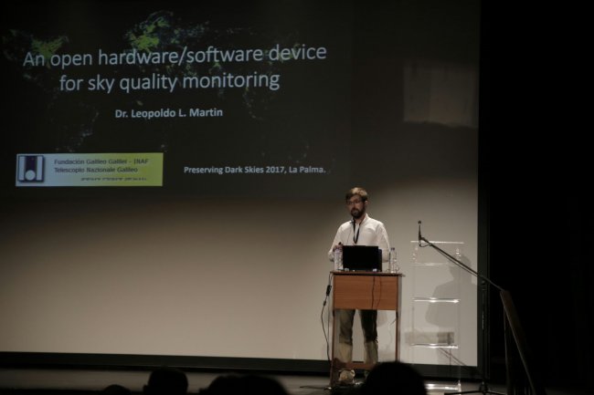 Leopoldo Luis Martín Rodríguez, de la Fundación Galileo Galilei, durante su charla en el congreso "Preserving the Skies" Foto: Elena Mora (IAC)