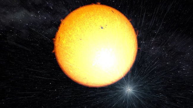 The massive pulsar in the binary system PSR J2215+5135, illustrated in the Figure, heats up the inner face of its companion star. Credit: Gabriel Pérez, SMM (IAC).