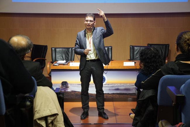 Nick Cox, research and development engineer dedicated to the analysis of satellite images, at the "First European Workshop on knowledge and technology transfer from Astrophysics". Credit: Inés Bonet (IAC).