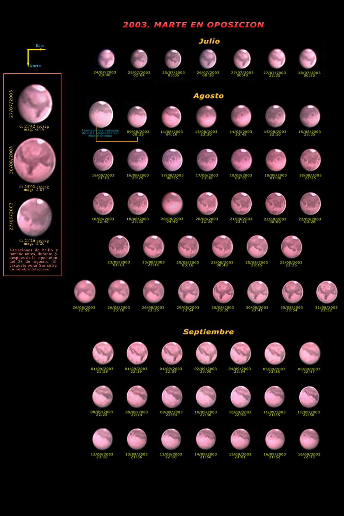 Sequence of images of Mars during its opposition in the summer of 2003.