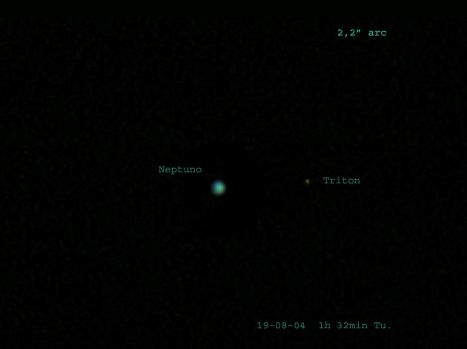 Image of the planet Neptune and Triton, one of its satellites.