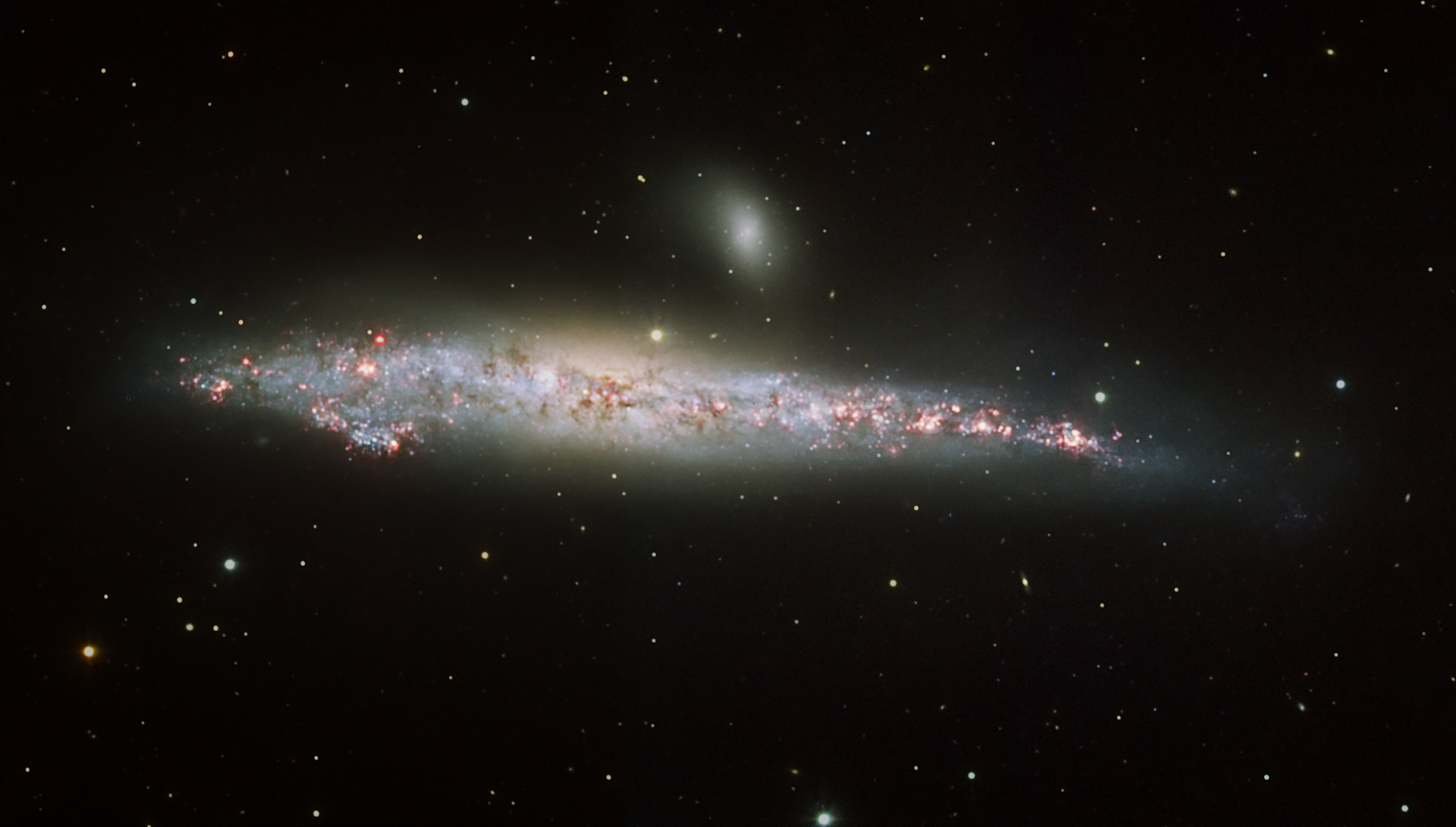 A pesar de su nombre coloquial y aunque no lo parezca a primera vista, NGC 4631 es una enorme galaxia espiral muy similar a la Vía Láctea. Al mostrase de canto no enseña sus brazos, pero sí enormes surcos de polvo que la atraviesan de lado a lado, estando salpicada de grandes nubes de hidrógeno, zonas de formación estelar de rojo caraterístico y cúmulos de estrellas gigantes azules. La parte más billante de la galaxia es la zona algo a la izquierda de su centro, donde hay una gran actividad de formación estelar. En esa zona han explotado numerosas supernovas, que han producido un halo difuso en rayos X en toda la galaxia que ha sido observado por el telescopìo espacial Chandra.