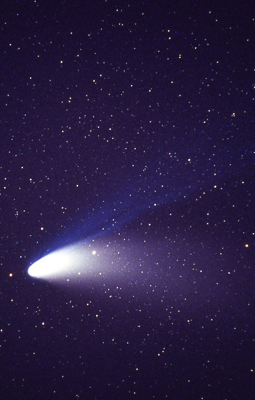 Long-period comet, discovered individually by amateur astronomers Alan Hale and Thomas Joel Bopp, the 23rd of July, 1995. Designated C/1995 O1, in that date it was still more than 7 AU away from the Sun. Typical features were a series of jets and dust layers ejected by the nucleus, as it rotated with an 11.5 hour period. The comet reached perigee (at 1.32 AU) on the 22nd of May, 1997, and perihelion (at 0.91 AU) on the 1st of April, 1997. Its brightest magnitude was -5. Its orbit has a 2,400 year period.