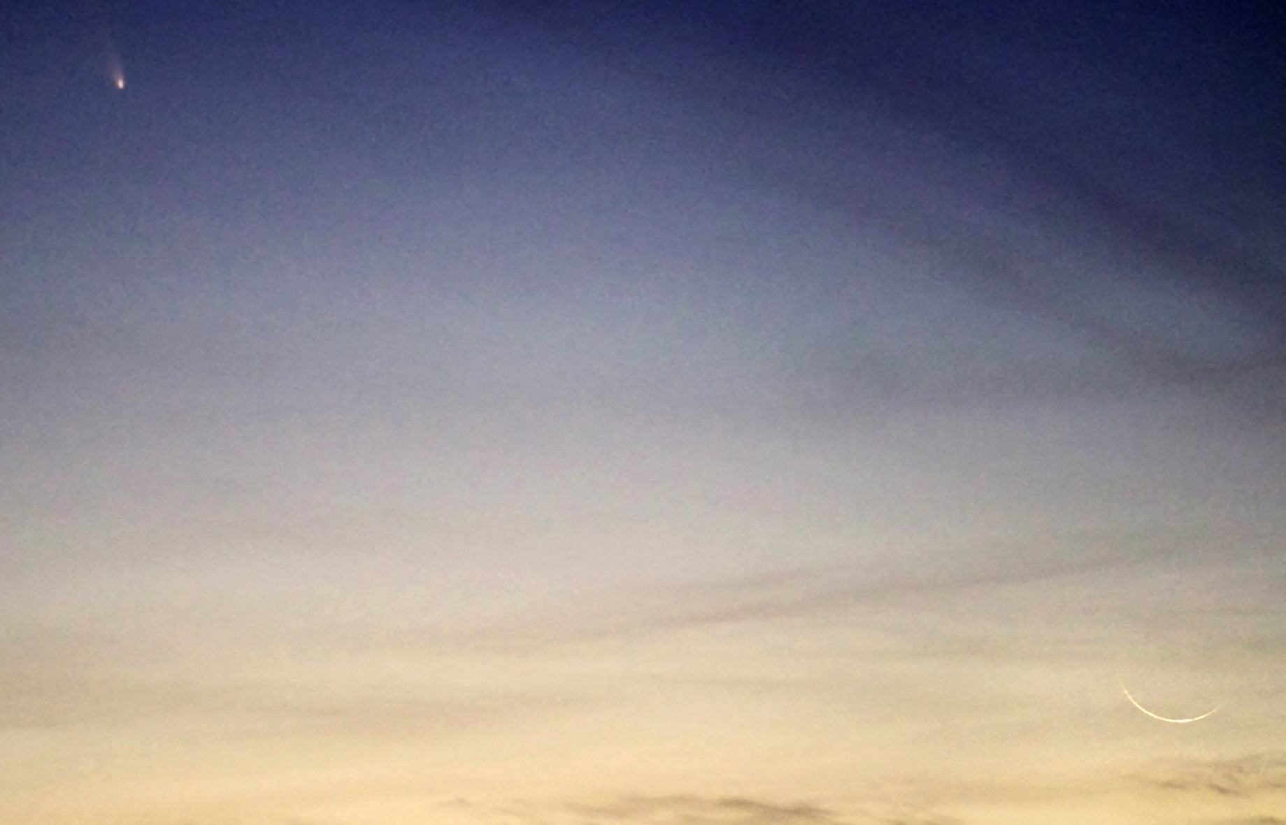 Cometa PanSTARRS y Luna de un día desde las cumbres de Tenerife el 12 de marzo del 2013.