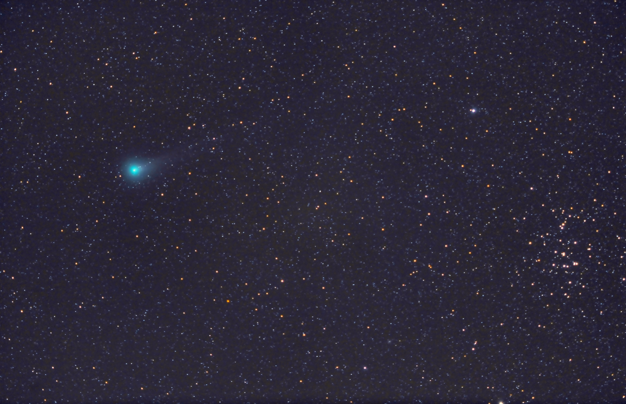 Cometa Lovejoy junto al cúmulo estelar M44. Fotografía tomada desde el observatorio del Teide el dia 9-11-2013.