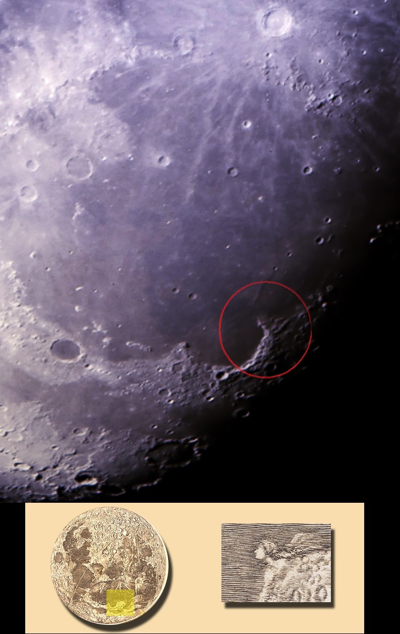 En el undécimo día de edad lunar podemos ver en todo su explendor la Bahía de los Iris (Sinum Iridum), uno de los parajes más espectaculares en el norte de la Luna. Se trata de una cuenca inundada por flujos de lava. Está delimitada por los Montes Jura y los promontorios Laplace y Heráclides. Este último, con la luz incidiendo adecuadamente, parece la cabeza y el pelo de una joven que dibujó (o, más bien, mandó dibujar) Giovanni Cassini cuando confeccionaba un mapa lunar por encargo de Luis XIV de Francia. En esta IAM podemos ver a la \\"doncella lunar\\" rodeada por un círculo y compararla con el dibujo del siglo XVII. Aunque nunca se ha confirmado, se cree que la modelo para esta bella Doncella Lunar fue la mujero de Cassini, Genevieve de Laistre. Esta pequeña anécdota puede servir como excusa para echar, de vez en cuando, un vistazo y unas fotos a nuestro espectacular y único satélite natural al que llamamos Luna. Vale la pena y no se arrepentirán.