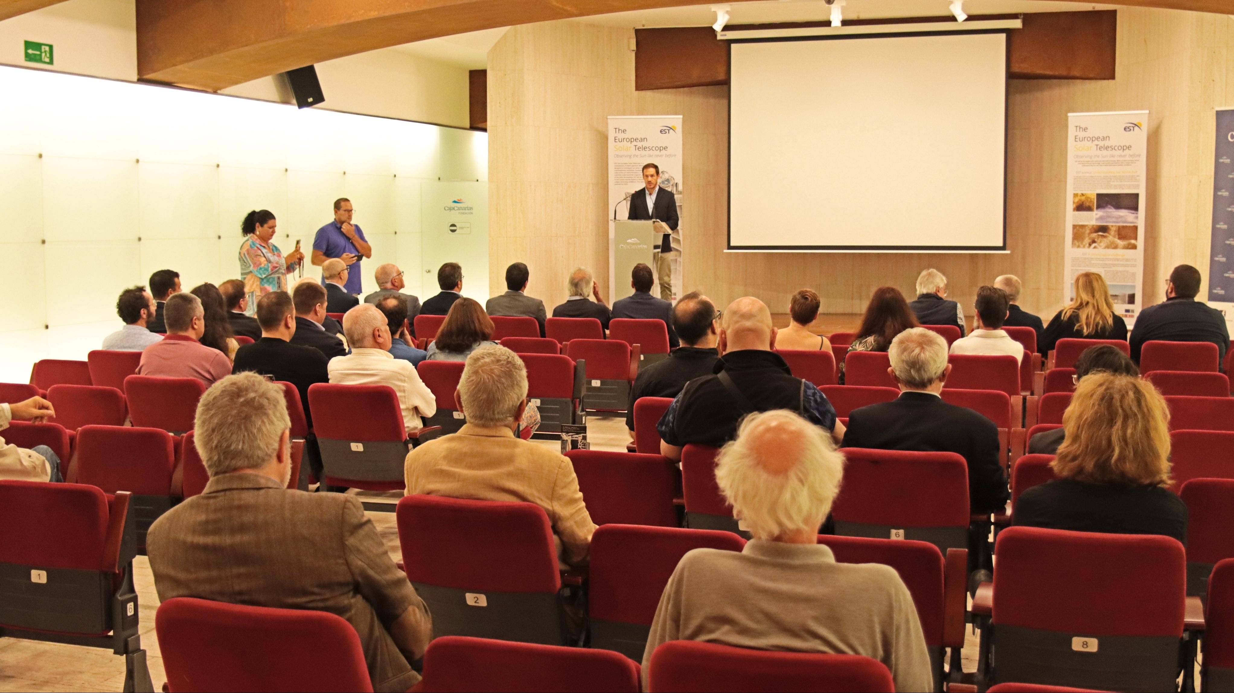 Proyección documental Reaching for de the Sun LST Download Un instante de la presentación del documental "Reaching for de the Sun" del proyecto del Telescopio Solar Europeo. Created at 09/29/2022