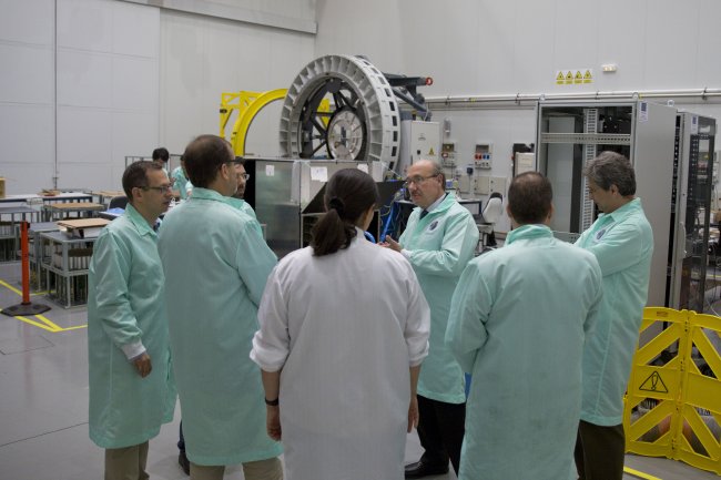 Rafael Rebolo, Director of the IAC, explaining the Instrumentation Division. Credit: Elena Mora (IAC).