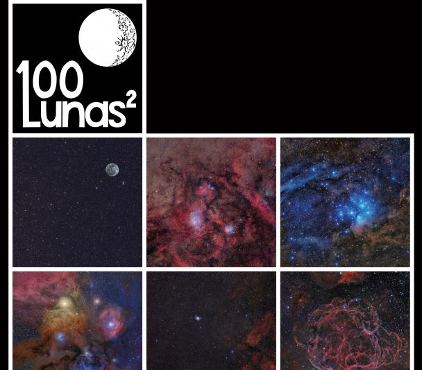 "100 square moons" comprises nine panels with astronomical images, each of 1m x 1m, accompanied by their corresponding explanatory panels, of 1m x 0.3m. The images were obtained with the Sky Treasure Chest (STC), an astrograph belonging to the Science Communication and Culture Unit (UC3) of the IAC, installed in the Teide Observatory (Tenerife, Canary Islands).