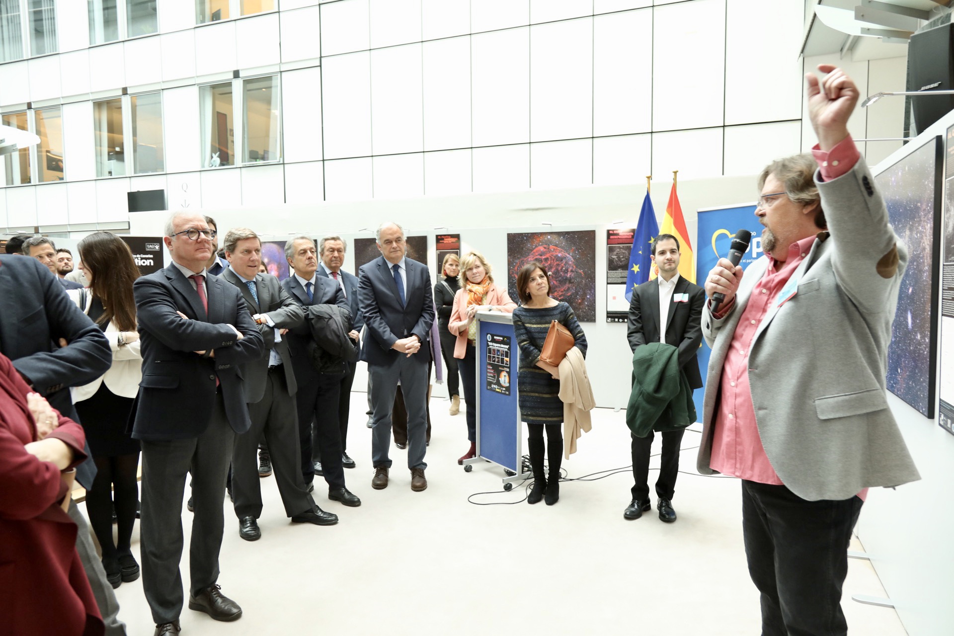 Alfred Rosenberg during the opening of the exhibition "100 Square Moons" in the European Parliament. Credit: Javier Lorenzo Domínguez.
