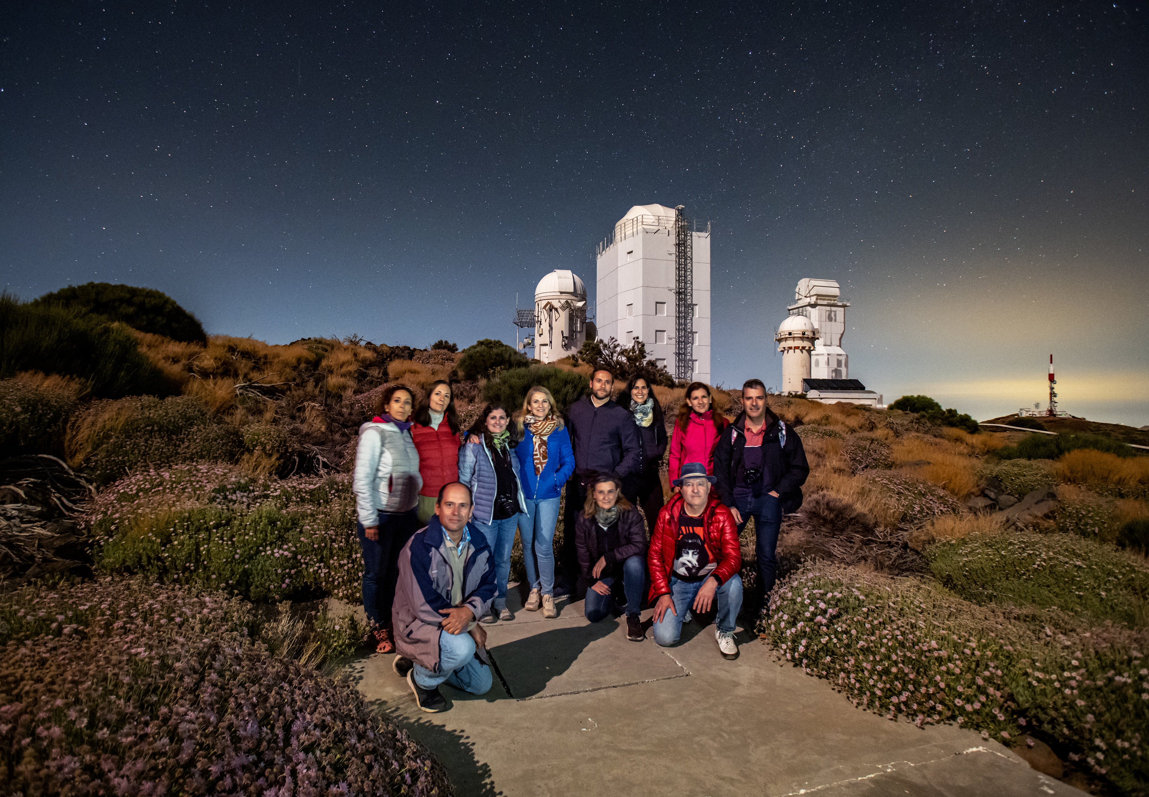 Attendees of the "Acércate al Cosmos" 2022 course at night, at the Teide Observatory. Credit: Daniel López / IAC.