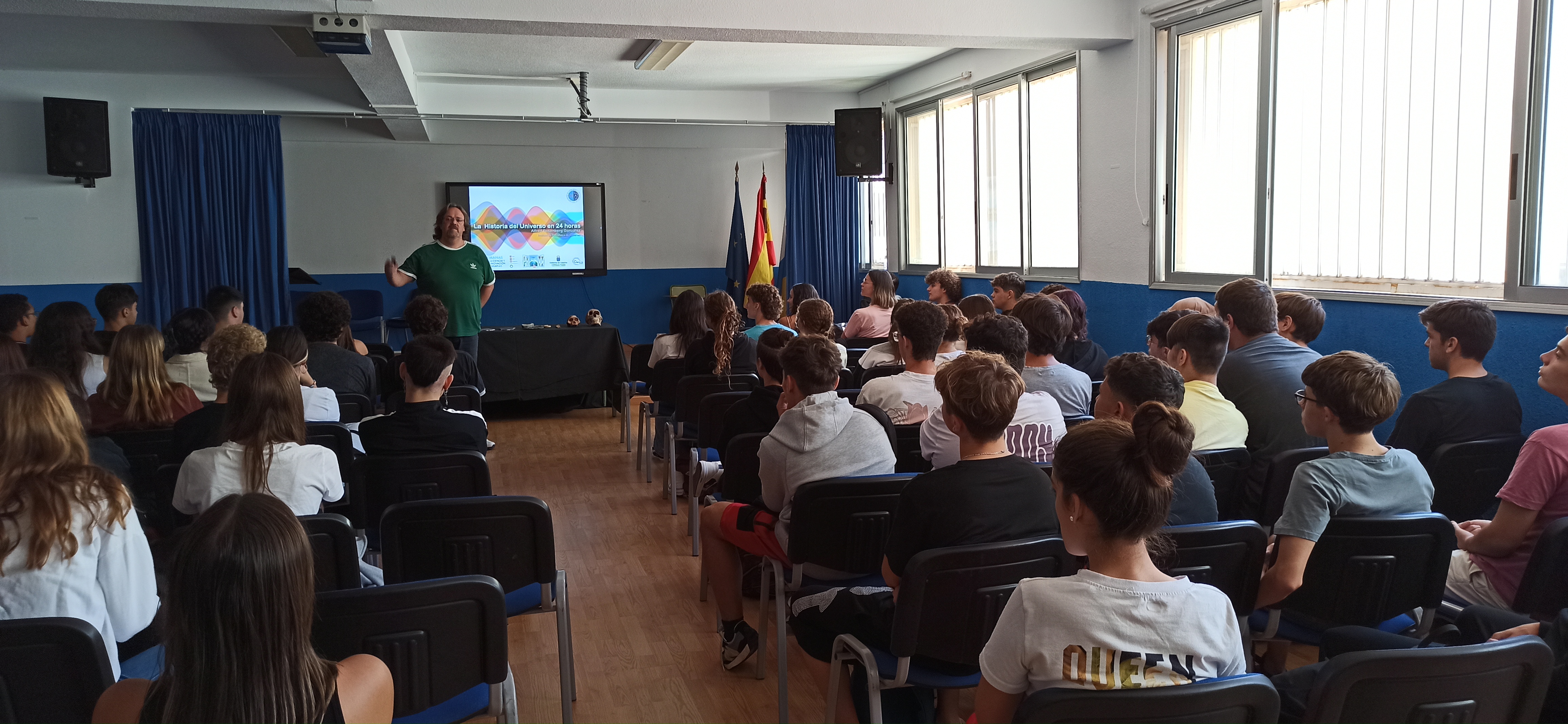 Attendees at the talk "The history of the Universe in 24 hours" at IES San Matías. Download Attendees at the talk "The history of the Universe in 24 hours" at IES San Matías. Credit: Lorena Hernández. Created at 11/18/2022 Category Events and activities