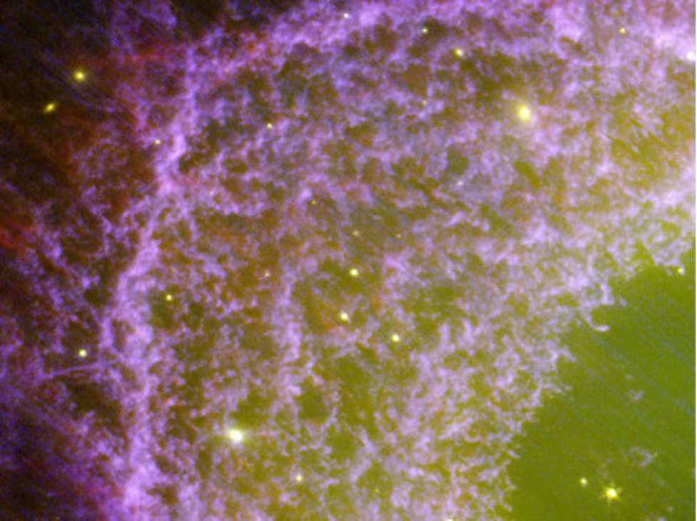 A close-up of part of the nebula shows that the ring consists of large numbers of small clumps. Clumps are small regions in the nebula that are much cooler and denser than the rest of the nebula and contain molecular gas. Some of the clumps are beginning to develop tails (see e.g. at the lower right), behaving as comets the size of planets. The team counts as many as 20,000 clumps and estimates that about half of all gas in the nebula is in these clumps. Credit: JWST/NIRcam.