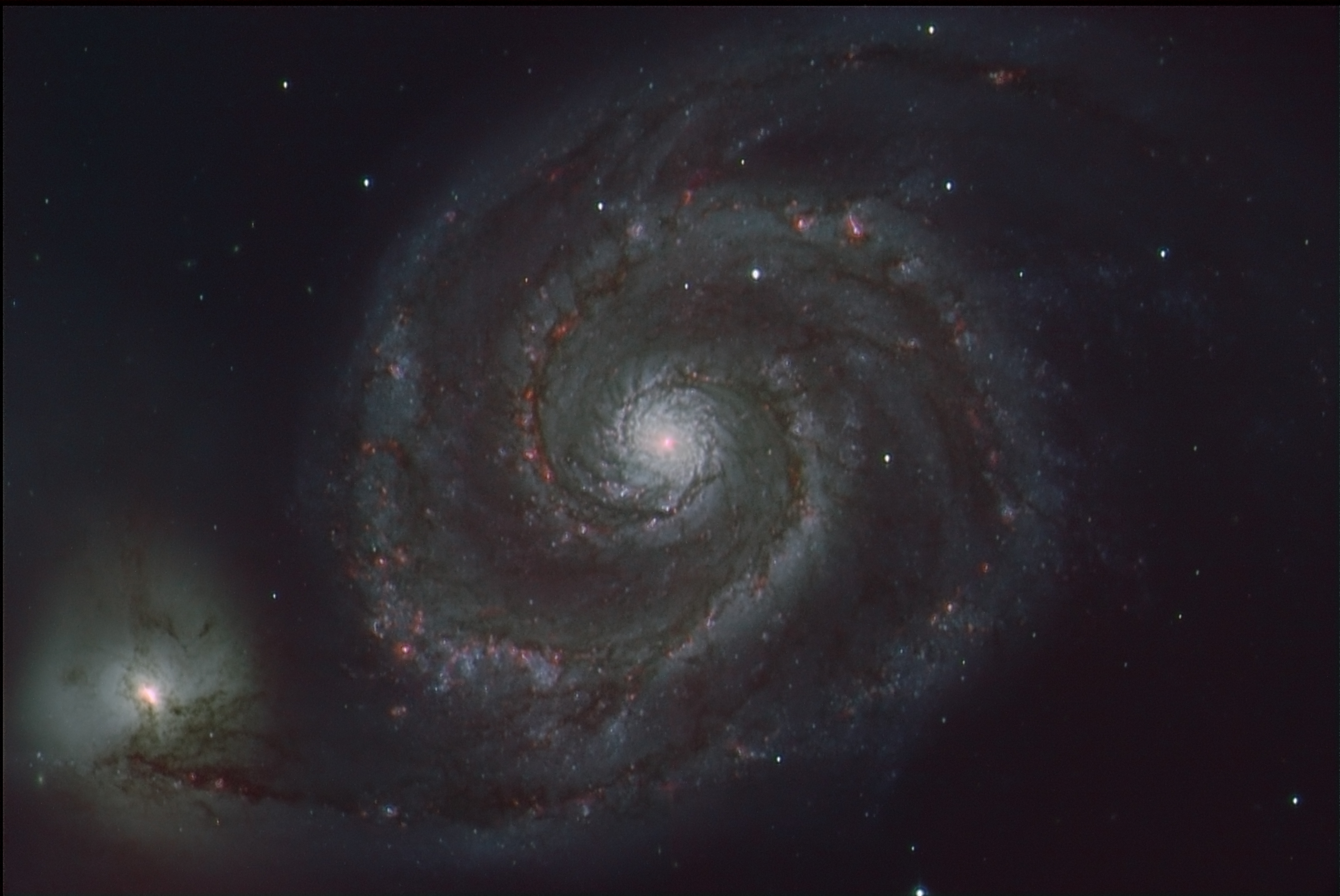 First-light image of the Whirlpool Galaxy (M51) obtained with the Two-meter Twin Telescope 3 (TTT3) Teide Observatory. Credit J.C. Casado