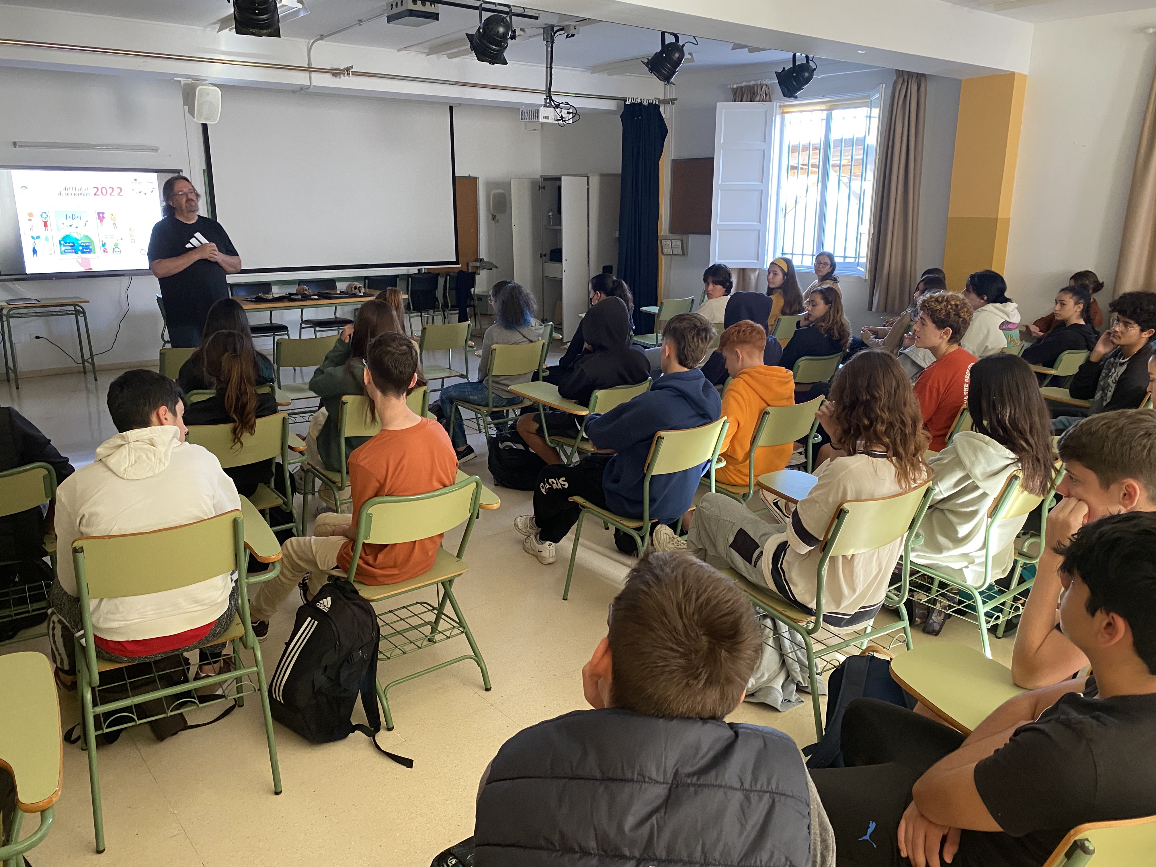 IES Santa Úrsula 05 (Mercedes Suárez).jpg Download Attendees at the talk "The history of the Universe in 24 hours" at IES Santa Úrsula. Credit: Mercedes Suárez Created at 11/18/2022 Category Events and activities