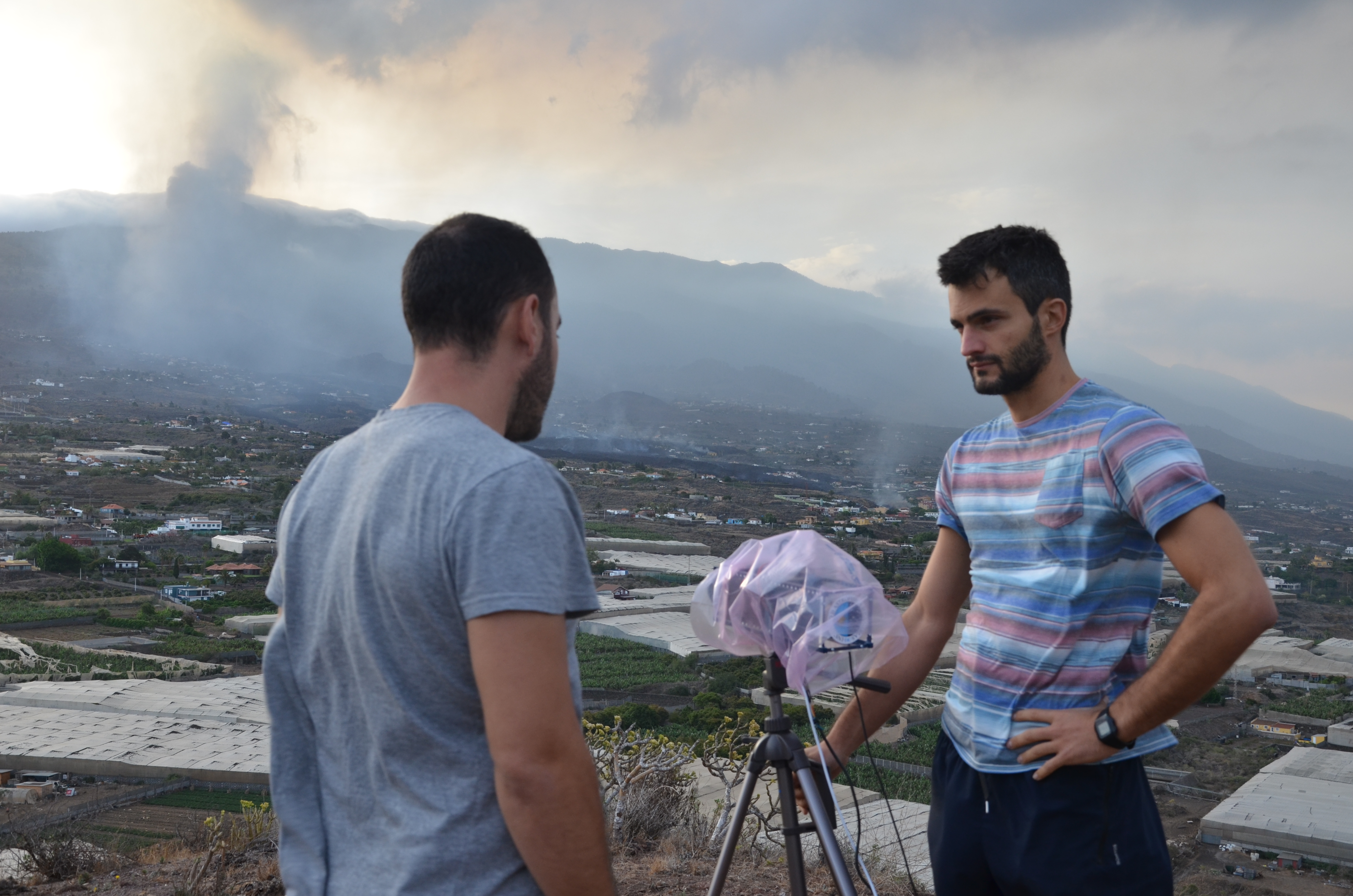 Ignacio Sidrach and Carlos Colodro taking images of the Cumbre Vieja volcano with the DRAGO camera