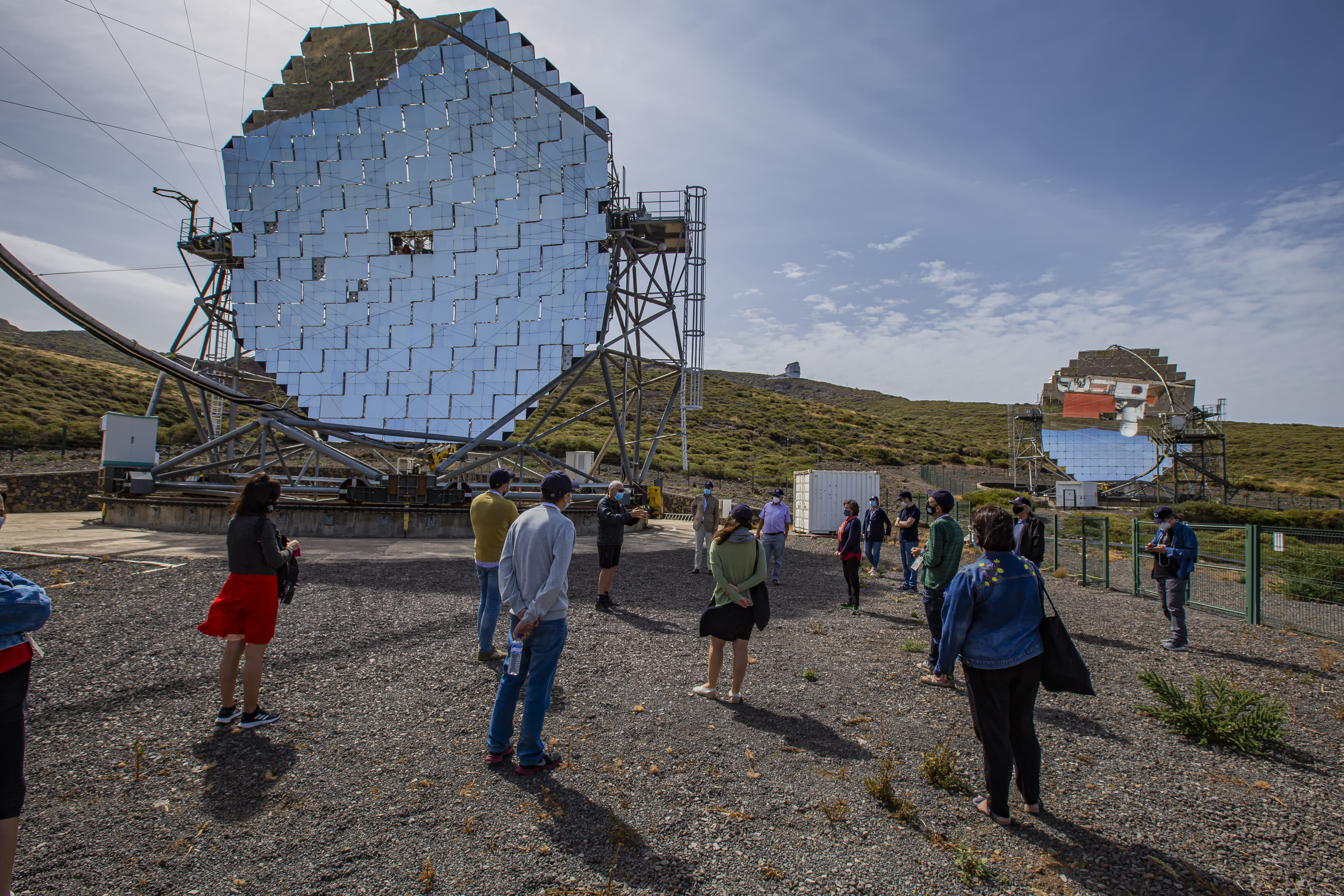 Participantes del III Festival Hispanoamericano de Escritores durante su visita a los telescopios MAGIC en el Observatorio del Roque de los Muchachos. Crédito: Juan Antonio González Hernández / IAC.