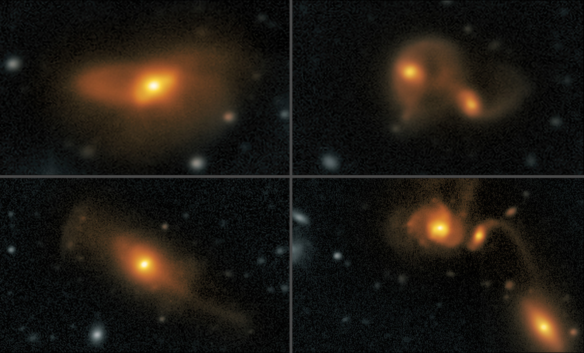 Example WFC/INT images of quasars taken as part of this study, showing distorted structures in the outer parts of the systems that are characteristic of galaxy mergers. Design: Gabriel Pérez Díaz (IAC)