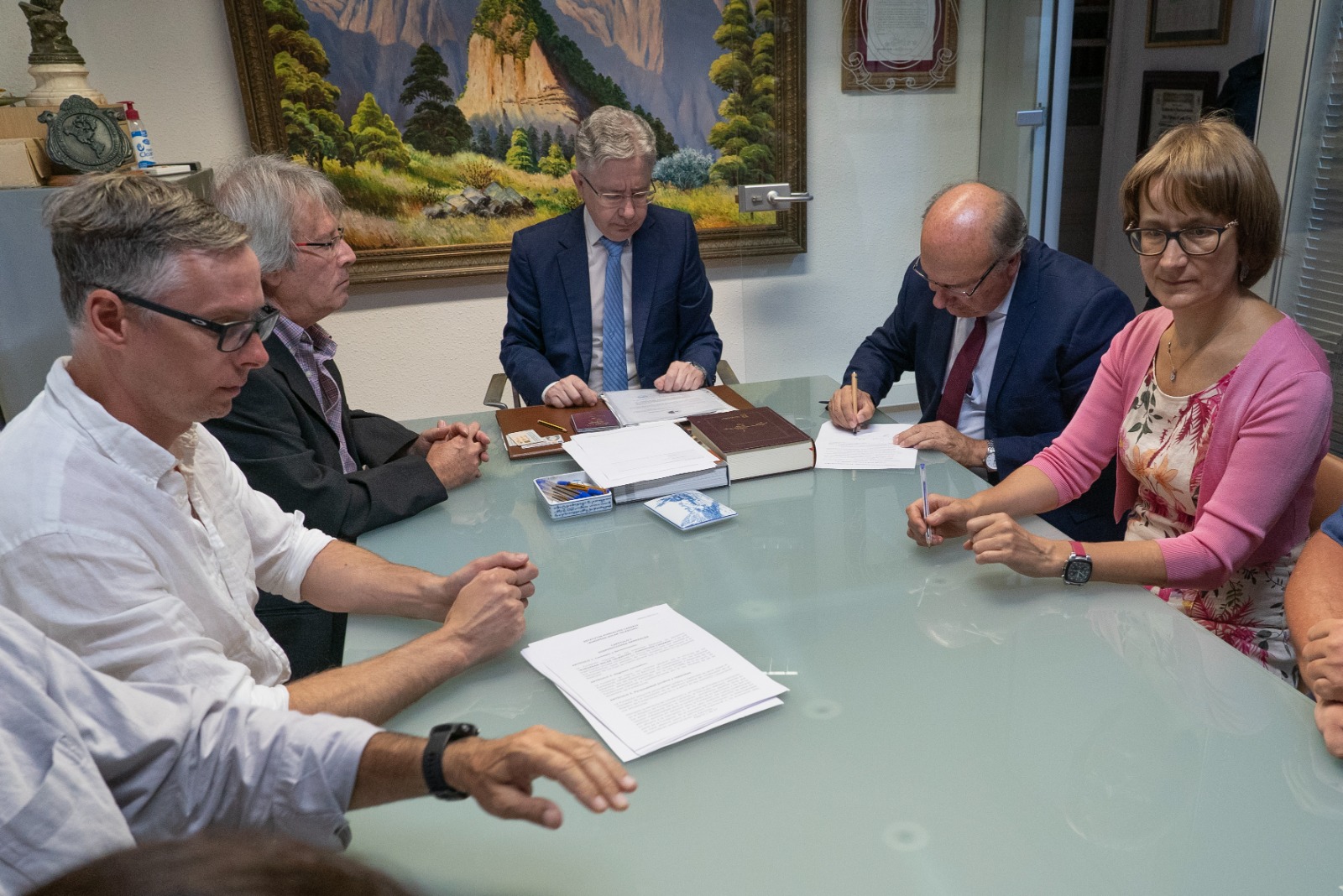 Rafael Rebolo firma el documento de constitución de la Fundación EST Download Rafael Rebolo firma el documento de constitución de la Fundación Canaria EST. Crédito: Inés Bonet (IAC). Created at 07/25/2023
