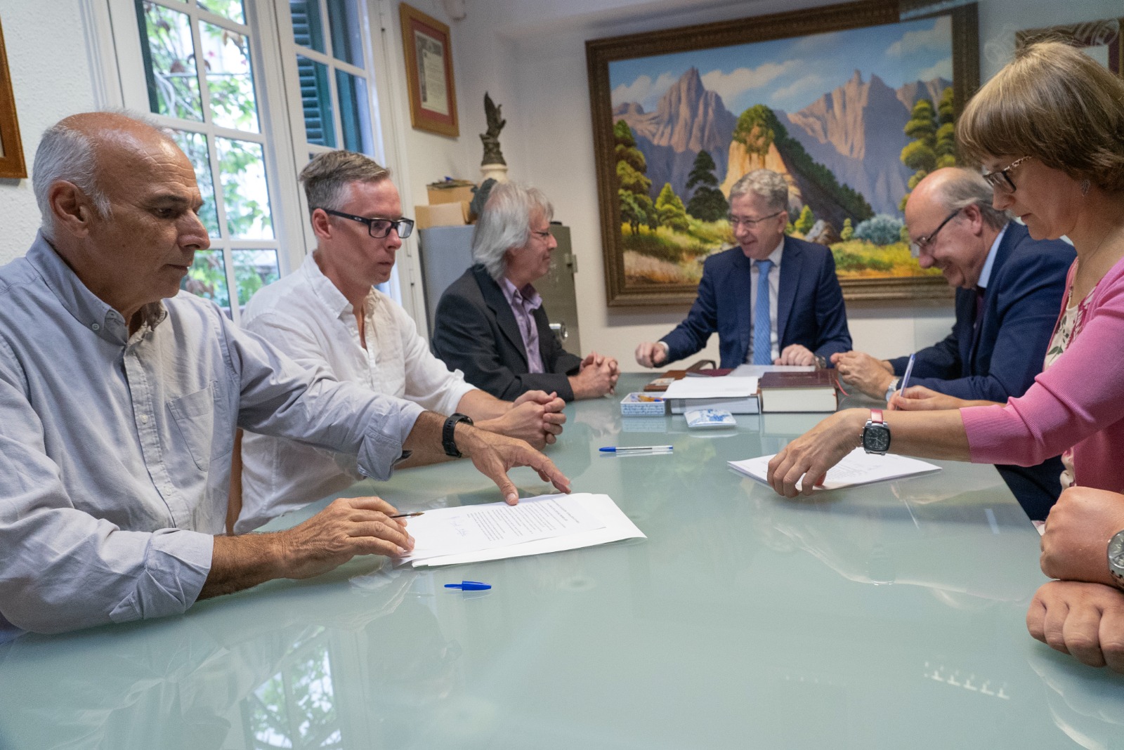 Representantes de las instituciones que conforman la Fundación Canaria EST Download Representantes de las instituciones que conforman la Fundación Canaria EST. Crédito: Inés Bonet (IAC). Created at 07/25/2023