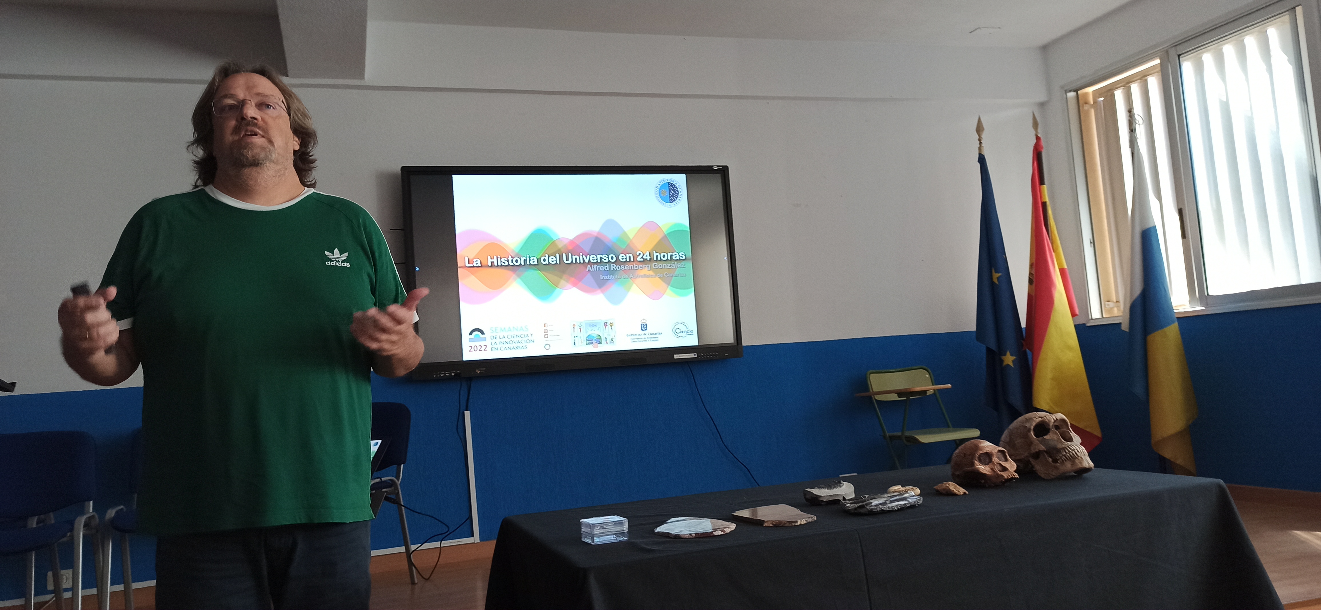 Talk "The history of the Universe in 24 hours" at IES San Matías Download Talk "The history of the Universe in 24 hours" at IES San Matías. Credit: Lorena Hernández. Created at 11/18/2022 Category Events and activities