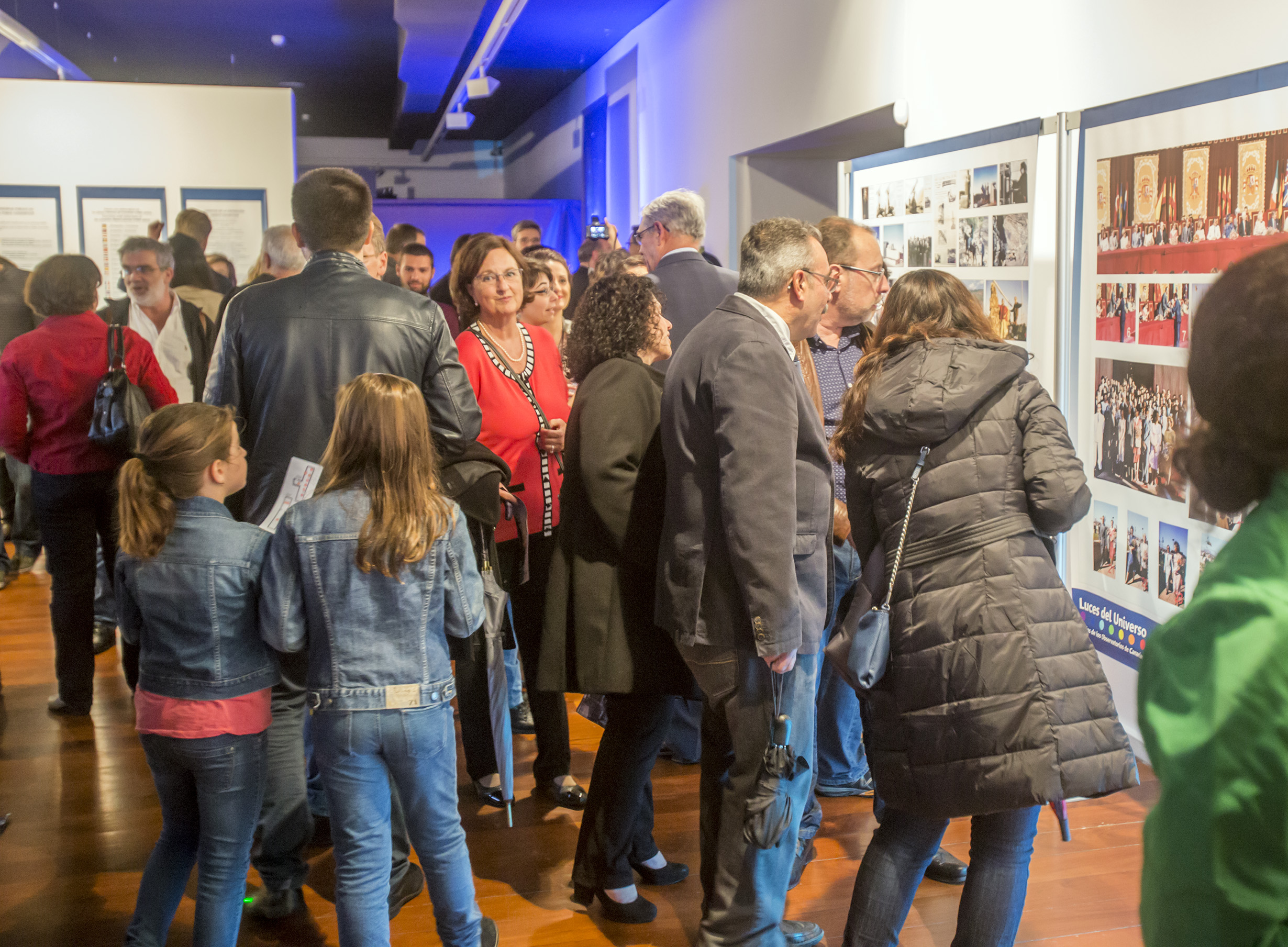 Visitors to the "Lights of the Universe" exhibition studying the panels dedicated to the history of the IAC and its observatories. Credits: Daniel López/IAC