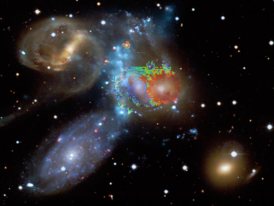 The JWST image with the WEAVE LIFU pointing at Stephan's Quintet for the first-light observation. Credits: NASA, ESA, CSA, STScI (background image); This composite has made use of "Aladin sky atlas" developed at CDS, Strasbourg Observatory, France
