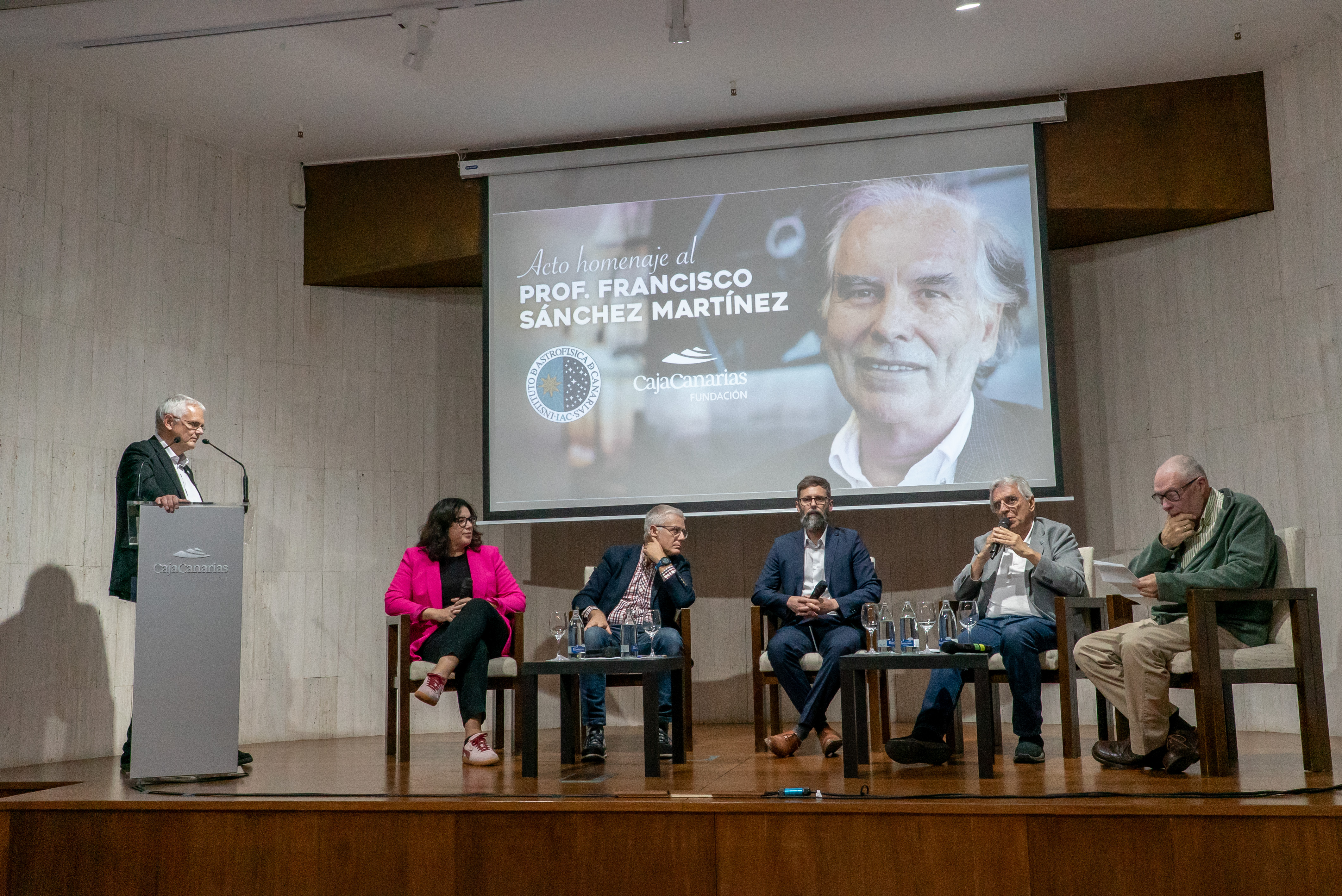 El acto culminó con una mesa redonda que reunió a cinco voces clave del IAC quienes destacaron el legado del fundador del IAC: Verónica Martín, jefa de la Unidad de Comunicación y Cultura Científica del IAC; Romano Corradi, director del Gran Telescopio Canarias; Rubén Sánchez, director del Isaac Newton Group of Telescopes; Pedro Álvarez, exdirector del Gran Telescopio Canarias; y Juan Carlos Pérez Arencibia, exadministrador del Observatorio del Roque de los Muchachos.