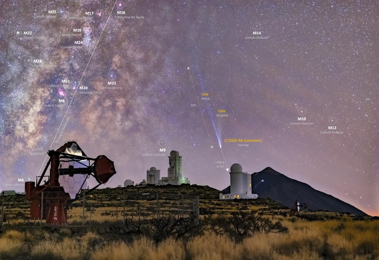 Nosotros pudimos disfrutar de la observación de ambos cometas tanto de forma visual (con prismáticos) como fotográficamente desde el Observatorio del Teide (isla de Tenerife, Instituto de Astrofísica de Canarias – IAC) desde el 11 de octubre al 11 de noviembre de 2025, y son estas imágenes y timelapse los que queremos compartir con todos ustedes. Podría pensarse que fotografiar el cielo es siempre igual, pero nada más lejos de la realidad. Cada tipo de objeto tiene su técnica, su instrumentación, filtros específicos y procesado posterior. Y en el caso de los cometas, como les mostraremos, existen incluso varias técnicas, se pueden utilizar diversos instrumentos y su procesamiento será distinto en cada caso.