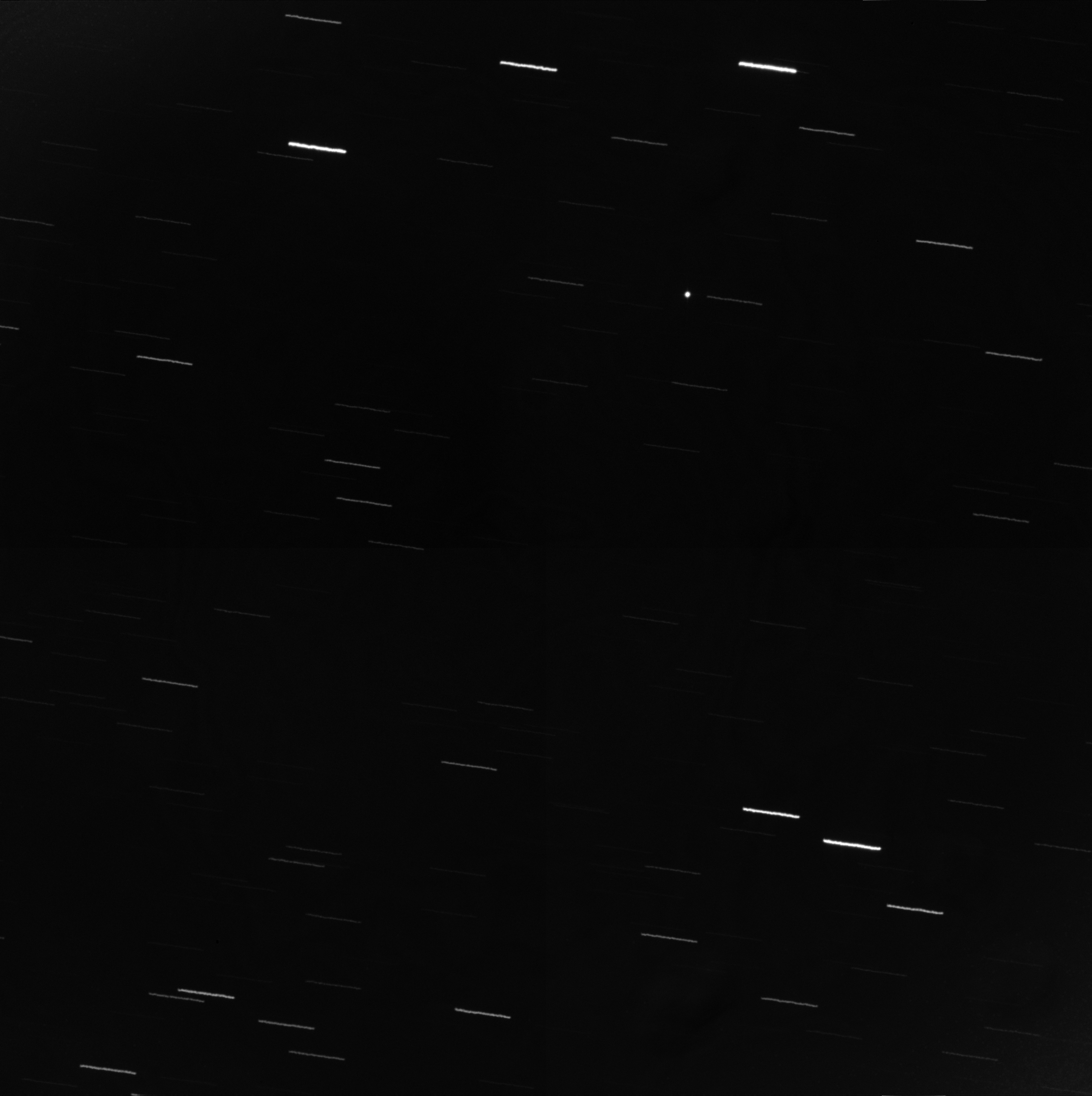 (ESA) situado en el Observatorio del Teide (IAC) siguiendo al asteroide 2012-DA14, que aparece como un punto en la parte superior derecha. Las trazas de las estrellas se deben al seguimiento del asteroide.