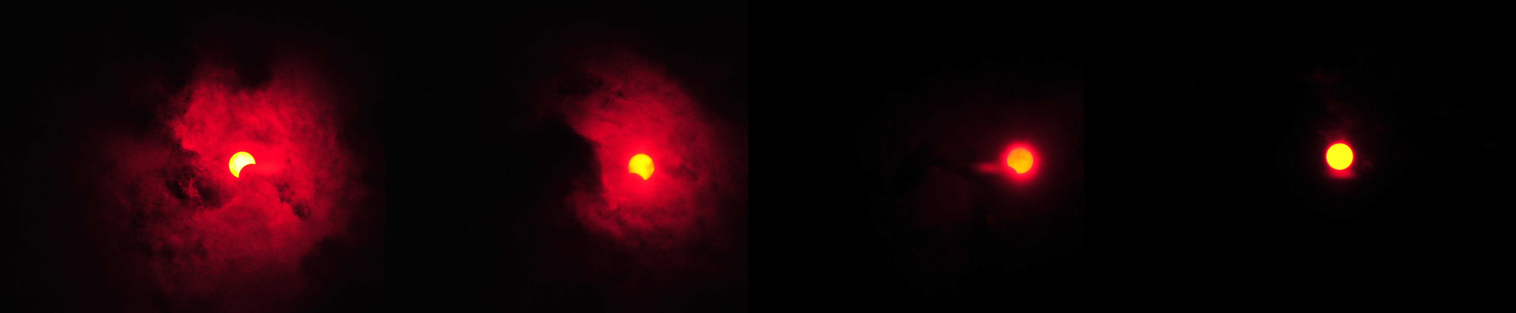 Pequeña secuencia del eclipse parcial de Sol del día 3 de noviembre de 2013; la abundante nubosidad no permitió disfrutar plenamente del eclipse pero al menos estas cuatro fotos dejan constancia del suceso.